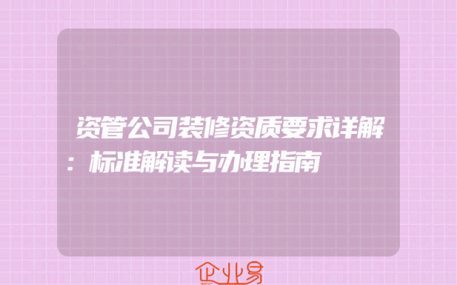 - 资管公司装修资质要求详解:标准解读与办理指南