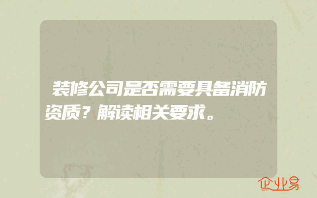 - 装修公司是否需要具备消防资质?解读相关要求。