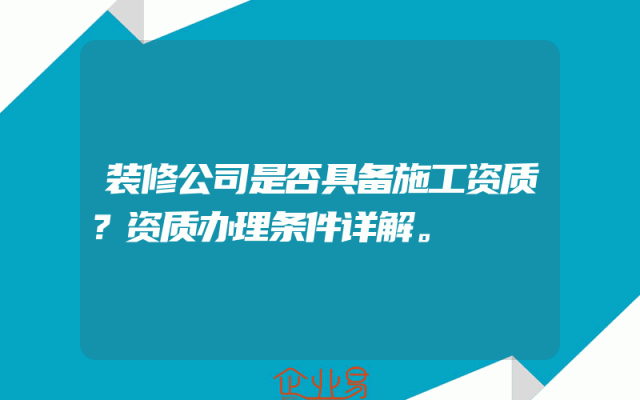 - 装修公司是否具备施工资质?资质办理条件详解。