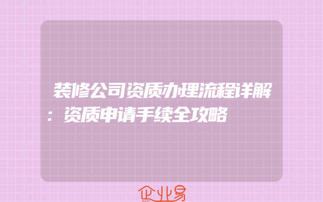 - 装修公司资质办理流程详解:资质申请手续全攻略