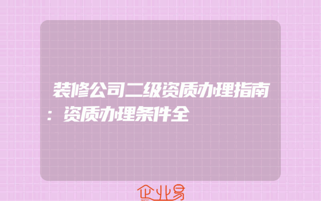 - 装修公司二级资质办理指南:资质办理条件全