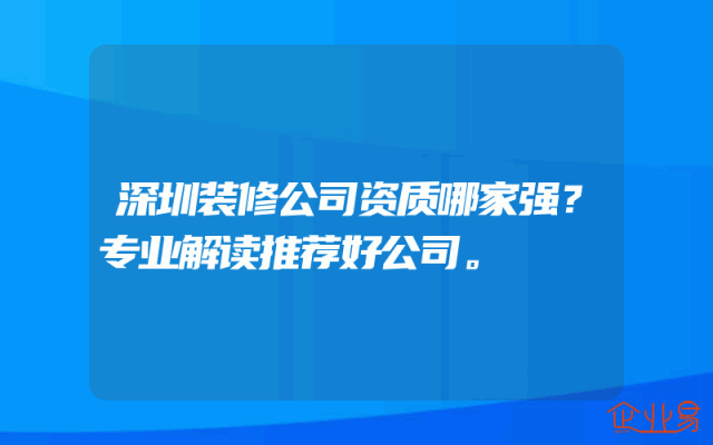 - 深圳装修公司资质哪家强?专业解读推荐好公司。