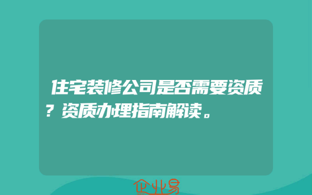 - 住宅装修公司是否需要资质?资质办理指南解读。