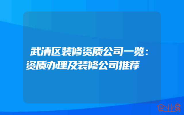 - 武清区装修资质公司一览:资质办理及装修公司推荐