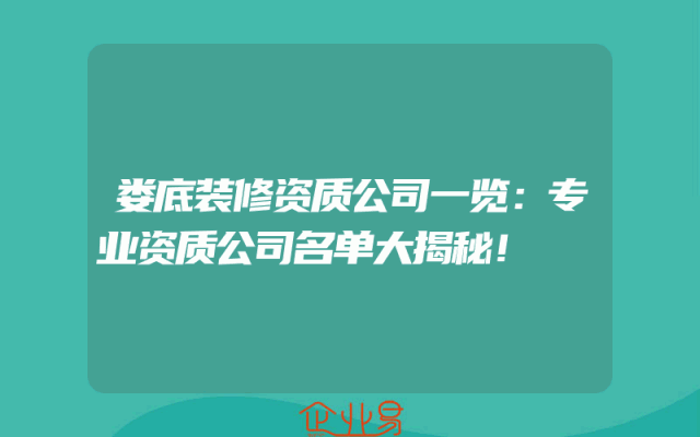 - 娄底装修资质公司一览:专业资质公司名单大揭秘!
