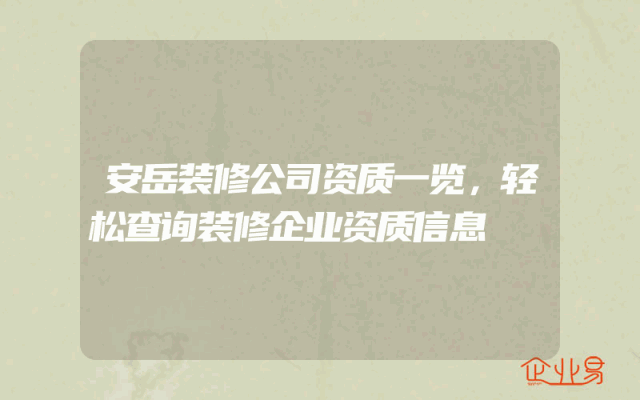 - 安岳装修公司资质一览,轻松查询装修企业资质信息