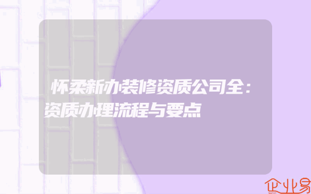- 怀柔新办装修资质公司全:资质办理流程与要点
