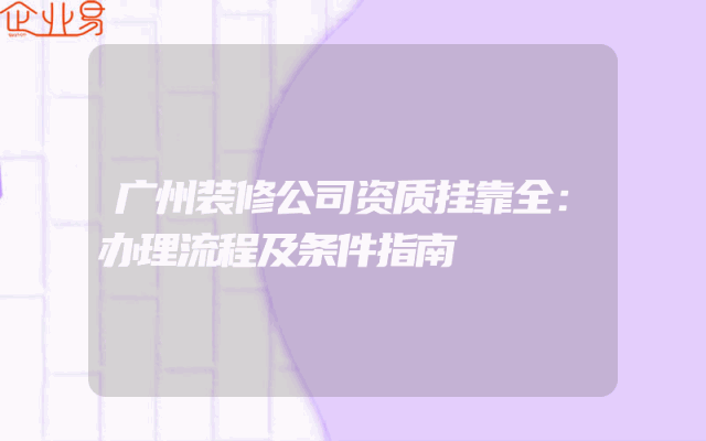 - 广州装修公司资质挂靠全:办理流程及条件指南