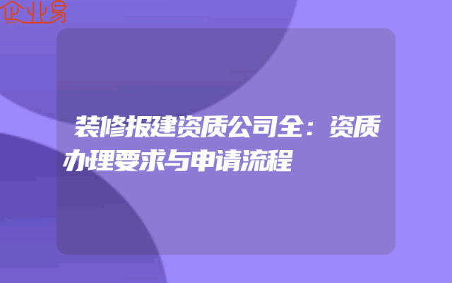 - 装修报建资质公司全解析:资质办理要求与申请流程一、资质办理要求在中国,从事装修报建业务的企业必须具备相应的资质。这些资质是对企业实力、技术和管理水平的认可,也是保障消费者权益的重要手段。装修报建资质