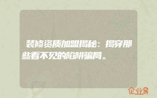 - 装修资质加盟揭秘:揭穿那些看不见的陷阱骗局。