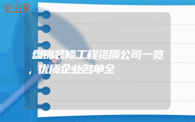 - 盘锦装修工程资质公司一览,优质企业名单全