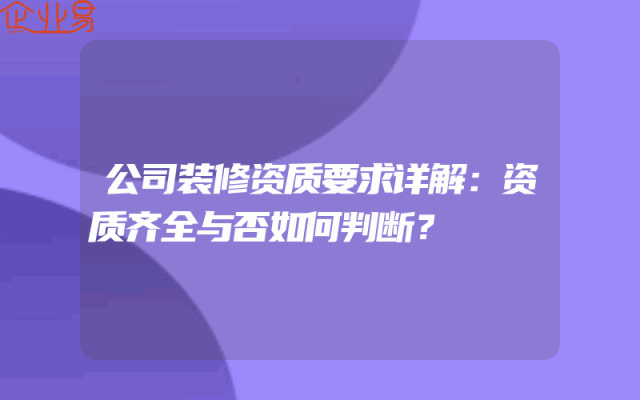 - 公司装修资质要求详解:资质齐全与否如何判断?