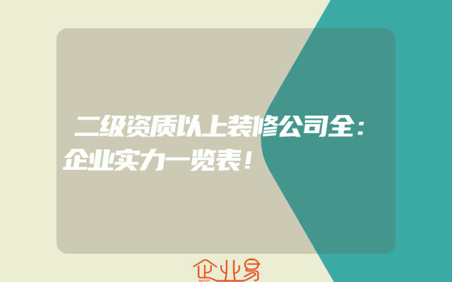 - 装修一级资质公司名单公布,实力强企业一览无余