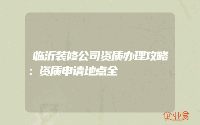 - 临沂装修公司资质办理攻略:资质申请地点全