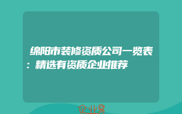 - 绵阳市装修资质公司一览表:精选有资质企业推荐