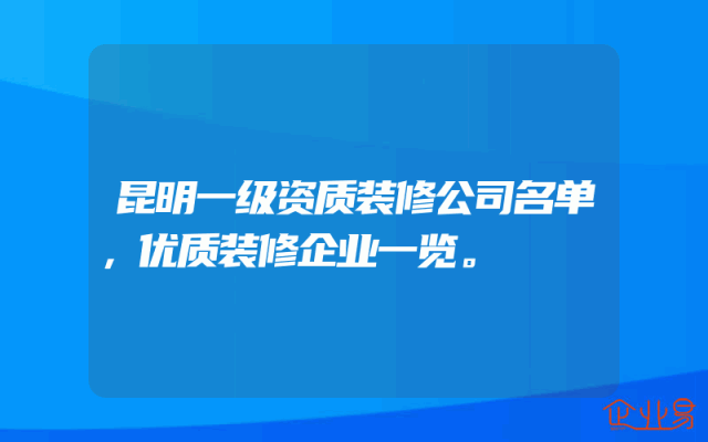 - 昆明一级资质装修公司名单,优质装修企业一览。