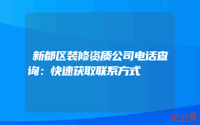 - 新都区装修资质公司电话查询:快速获取联系方式