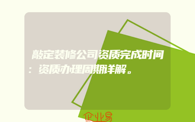 - 敲定装修公司资质完成时间:资质办理周期详解。