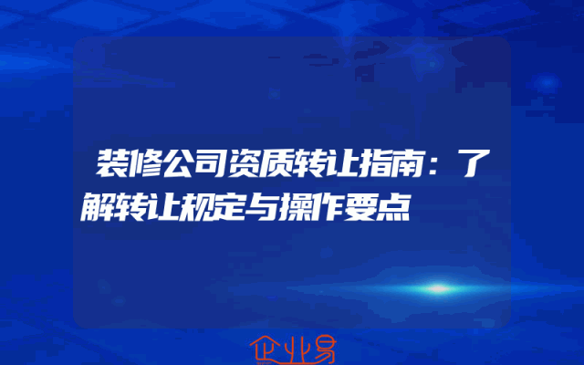 - 装修公司资质转让指南:了解转让规定与操作要点
