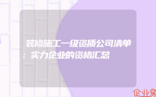 - 装修施工一级资质公司清单:实力企业的资格汇总