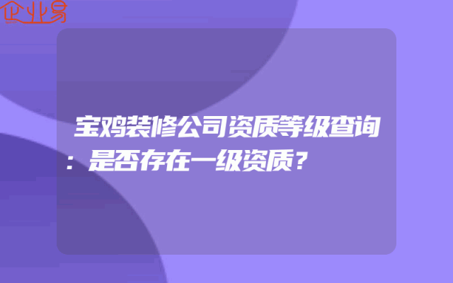 - 宝鸡装修公司资质等级查询:是否存在一级资质?