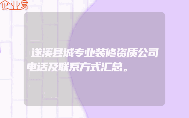 - 遂溪县城专业装修资质公司电话及联系方式汇总。