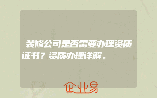 - 装修公司是否需要办理资质证书?资质办理详解。