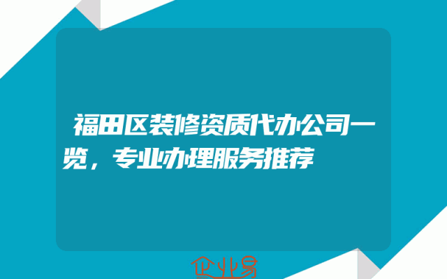 - 福田区装修资质代办公司一览,专业办理服务推荐