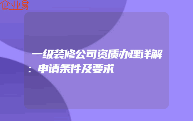 - 一级装修公司资质办理详解:申请条件及要求