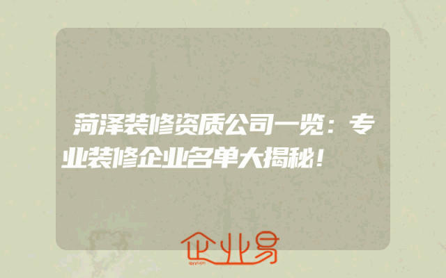 - 菏泽装修资质公司一览:专业装修企业名单大揭秘!