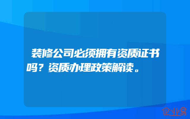- 装修公司必须拥有资质证书吗?资质办理政策解读。