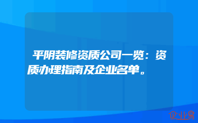 - 平阴装修资质公司一览:资质办理指南及企业名单。