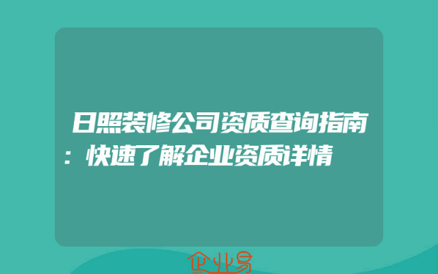 - 日照装修公司资质查询指南:快速了解企业资质详情