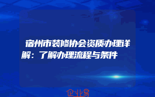 - 宿州市装修协会资质办理详解:了解办理流程与条件