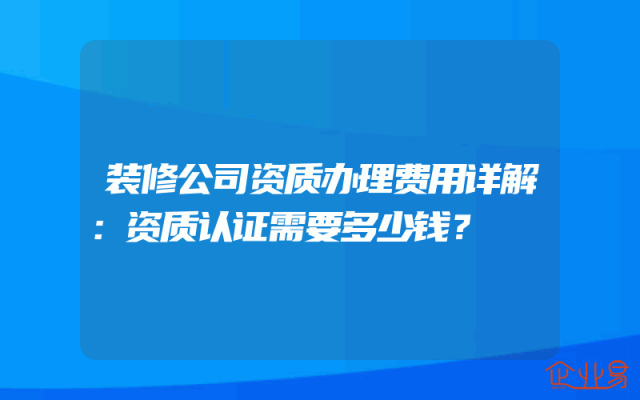 - 装修公司资质办理费用详解:资质认证需要多少钱?