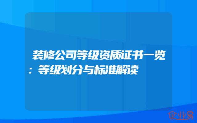 - 装修公司等级资质证书一览:等级划分与标准解读