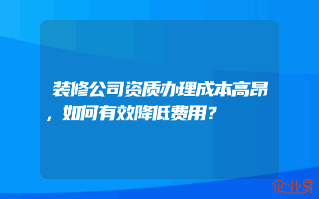 - 装修公司资质办理成本高昂,如何有效降低费用?