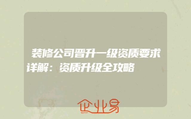 - 装修公司晋升一级资质要求详解:资质升级全攻略