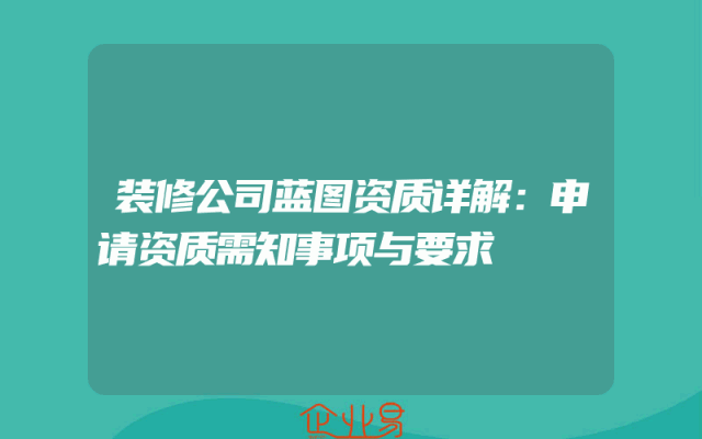- 装修公司蓝图资质详解:申请资质需知事项与要求