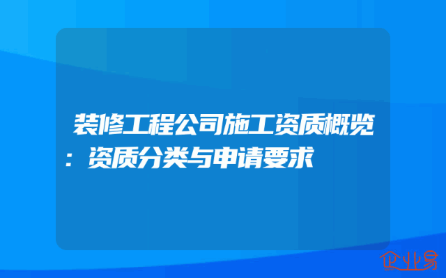 - 装修工程公司施工资质概览:资质分类与申请要求