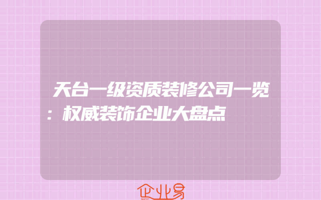 - 天台一级资质装修公司一览:权威装饰企业大盘点