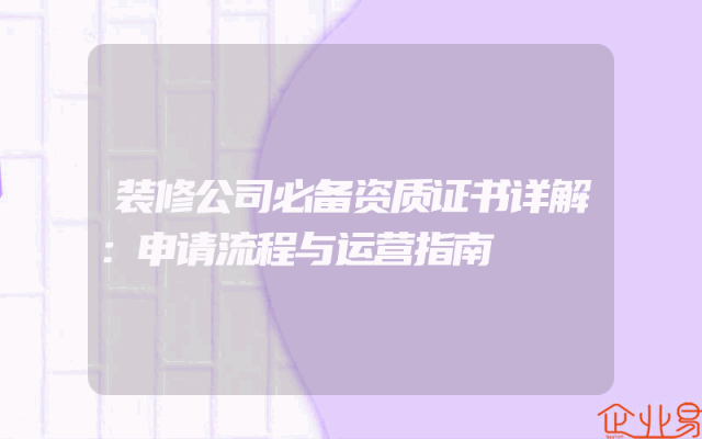 - 装修公司必备资质证书详解:申请流程与运营指南
