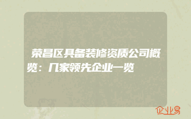 - 荣昌区具备装修资质公司概览:几家领先企业一览