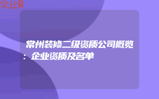 - 常州装修二级资质公司概览:企业资质及名单解析一、常州市装修二级资质概述在建筑装饰行业,企业的资质是评估其综合能力与信誉的重要指标。常州市作为经济发达城市,拥有众多的装修企业,其中不少企业获得了二级资质。这些企业的资质涵盖了装修设计、施工、材