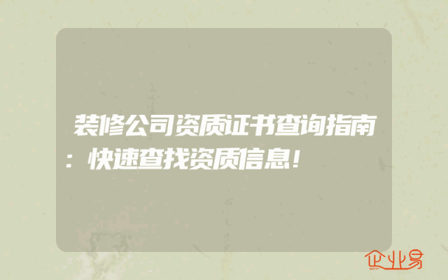 - 装修公司资质证书查询指南:快速查找资质信息!