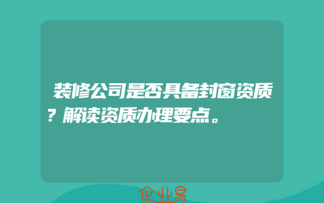 - 装修公司是否具备封窗资质?解读资质办理要点。