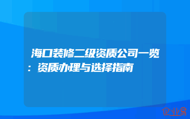 - 海口装修二级资质公司一览:资质办理与选择指南