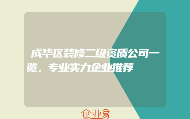 - 成华区装修二级资质公司一览,专业实力企业推荐