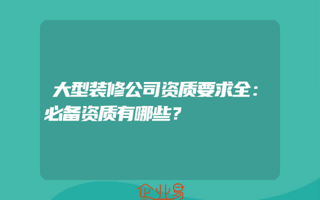 - 大型装修公司资质要求全:必备资质有哪些?