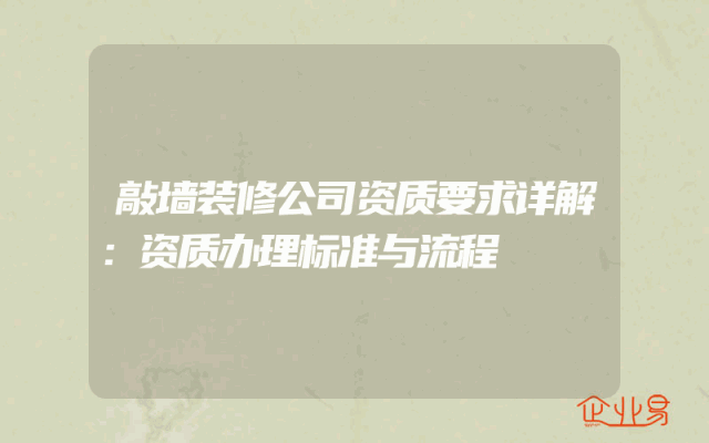 - 敲墙装修公司资质要求详解:资质办理标准与流程